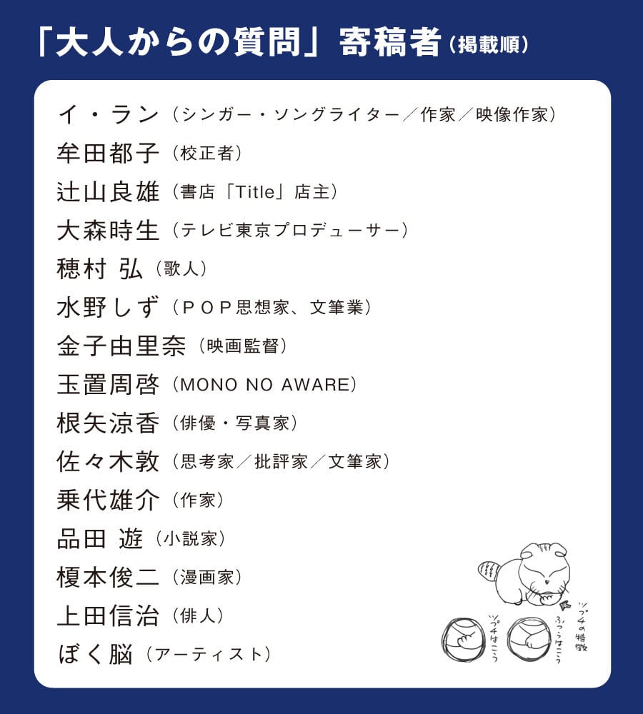 各界の大人たちからの書き下ろし質問への回答を併録。